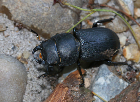 The lesser stag beetle may be smaller than its famous cousin, but it is still a large beetle with large jaws. It can be seen in woods, parks and hedgerows during summer, and depends on dead wood.