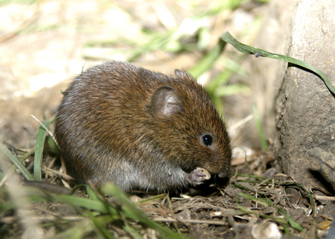 The chestnut-brown bank vole is our smallest vole and can be found in hedgerows, woodlands, parks and gardens. It is ideal prey for owls, weasels and kestrels.